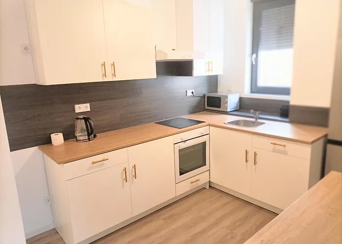 Apartment Mit Balkon is equipped with a kitchenette with appliances to prepare own dishes. The nearest airport is Frankfurt, 20 km from the property, and Friedhof bus station is approximately 5 minutes' walk away.